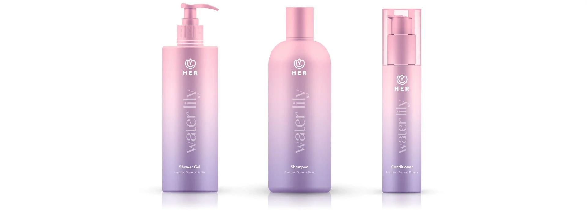 Mit dem neuen Brand Launch für HER entstand mit der Produktlinie Waterlily ein leichtes und sinnliches Beauty Design. Die Produkte bieten eine reine, nachhaltige & wirksame Pflegeroutine für empfindliche Haut.